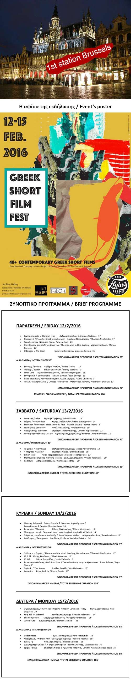 First SET’s event was held in the city of Brussels in Belgium for four days on 12, 13, 14 and 15 February 2016. We have devised a plan that includes Greek short films from the last five years. The screenings took place from Friday until Monday with a program repetition at the following day.