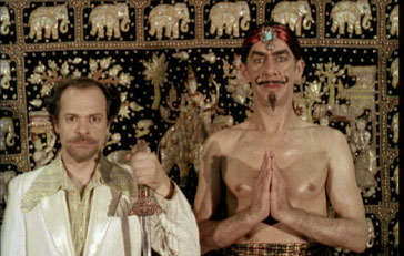 Σε αυτά τα όρια προσπαθεί να κρατήσει τον φακίρη και το θέαμα που προσφέρει στο κοινό του θεάτρου.Ο Φακίρης στην σκηνή παρόλες τις υπερβατικές ικανότητες που έχει ακολουθεί τις απαιτήσεις του Ιμπρεσάριου. Καταπίνει και μασάει γυαλιά με την συνοδεία ινδικής μουσικής.